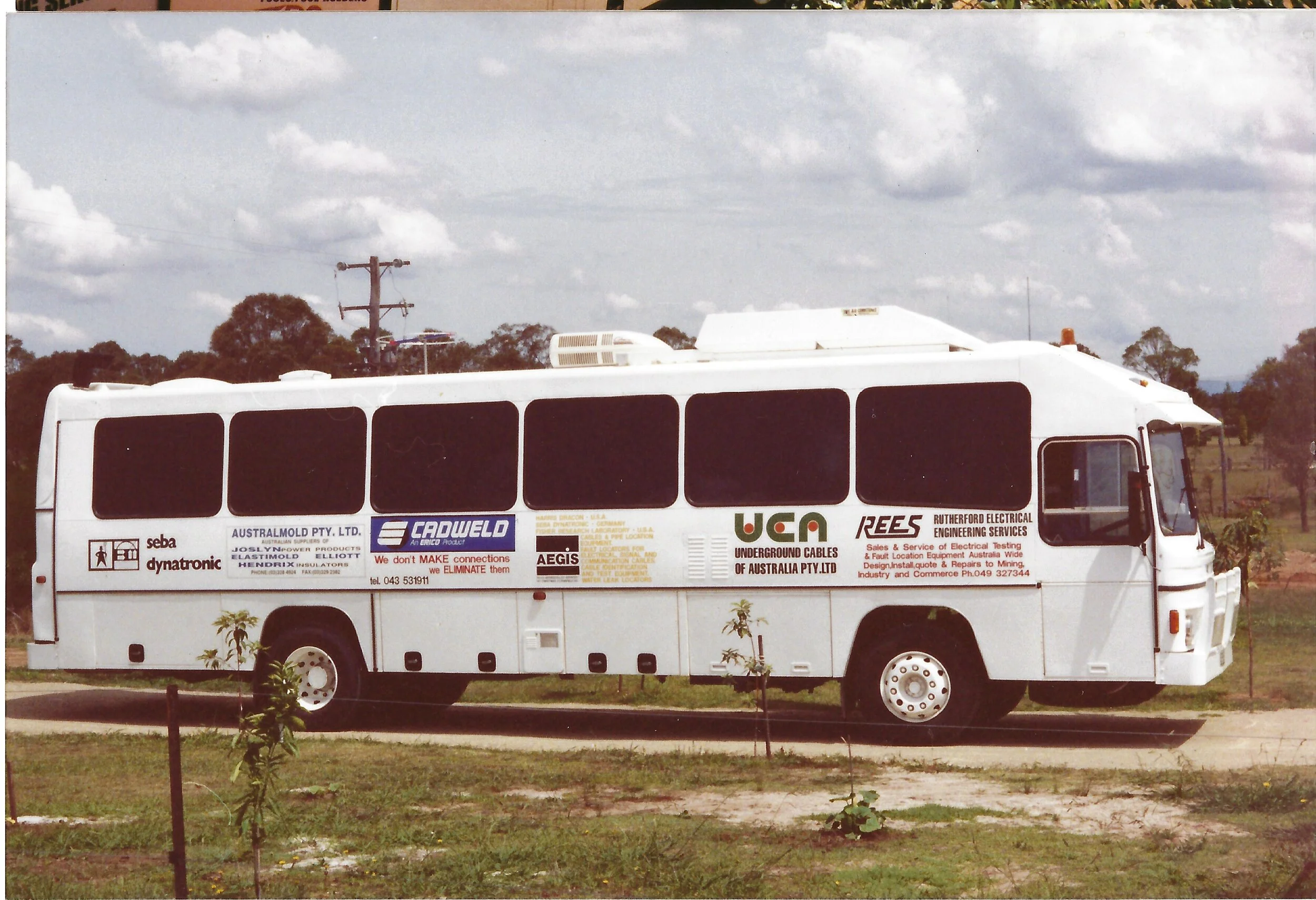 Mobile showroom and demonstration bus - built and designed by Ric Macey and traveled around Australia visiting mines and electrical authorities. Photo 1996.